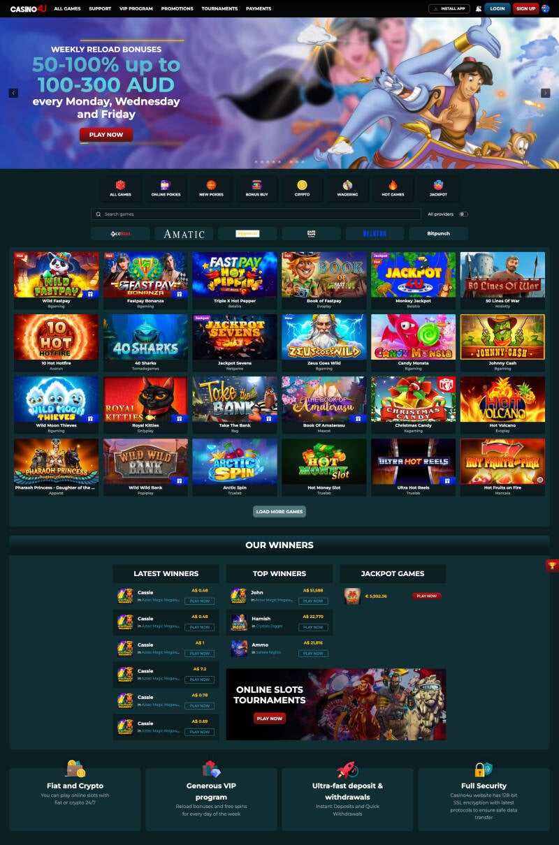 Start playing now and get rewarded with amazing bonuses and promotions from one of the top online casinos today! Enjoy your time at Casino4u and good luck!